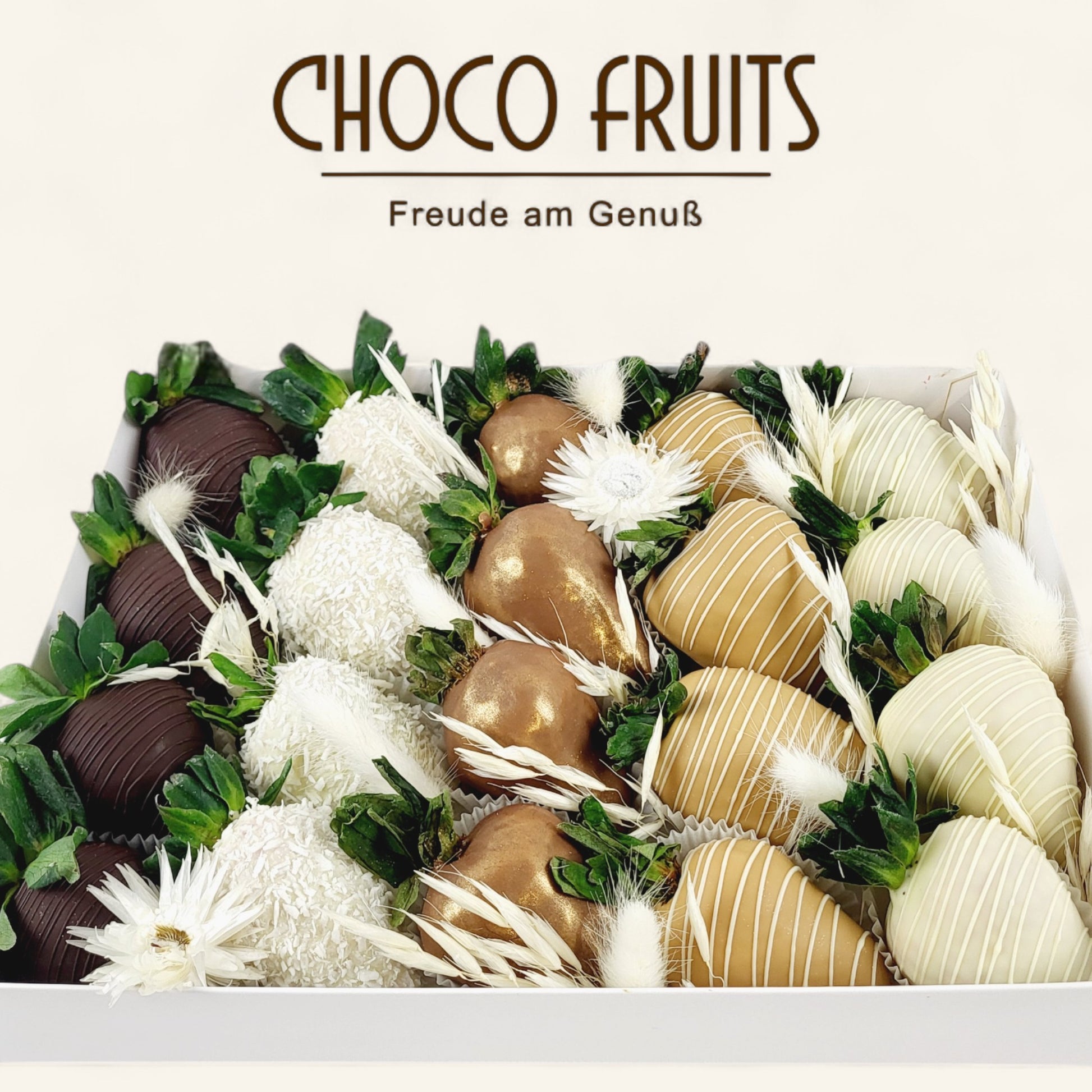 - 20 handveredelte Erdbeeren, schokoliert und dekoriert